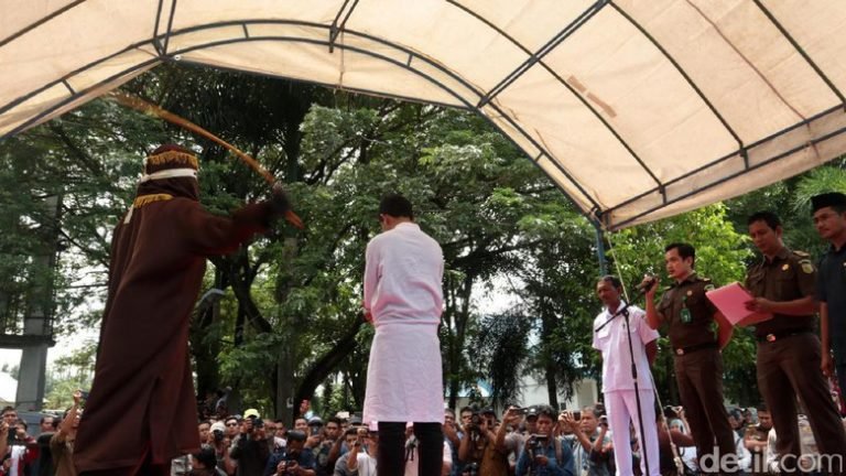 Twee mannen in de Indonesische provincie Atjeh kregen 85 stokslagen terwijl honderden mensen toekeken, omdat zij betrapt waren toen ze seks met elkaar hadden. Naast