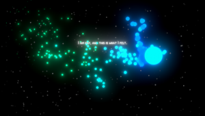 Gelukkig worden de fases steeds beter voor mijn kleine rondje, aan wie ik nu bijna een beetje gehecht ben. In de allerlaatste fase zweeft mijn rondje vrolijk door een zee van andere rondjes. Het sporadische vierkantje dat ik zie laat ik niet in de buurt komen. Op het scherm staat: ‘I am gay, and this is what I felt’.
