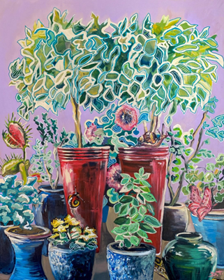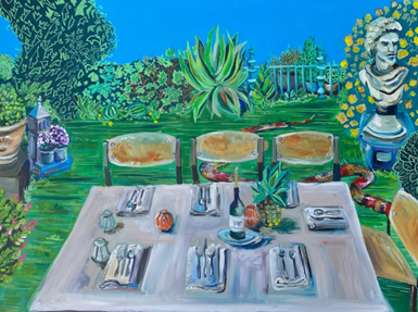 Dmytro ziet vaak pas na het maken van zijn werk dat de voorwerpen en de algehele sfeer van zijn werk vrij queer zijn: “Ik denk door de vele kleuren en het feit dat veel gebeurt en alles net even iets anders is. Ik wil tegen de status quo ingaan.” Schilderen is voor Dmytro meditatief en biedt een ontsnapping aan wat er gebeurt in de wereld en voor hem specifiek Oekraïne: “Mijn werk is persoonlijk en het geeft mijn identiteit en persoonlijkheid weer. Ik kan alleen op de een of andere manier niet iets maken wat betrekking heeft op Oekraïne. Ik loop dan een beetje vast.” Wel is een van Dmytro’s werken ‘East of Eden’ gebaseerd op de tuin van zijn ouders in geboortestad Vinnytsia, een plek die hij koestert en mist.