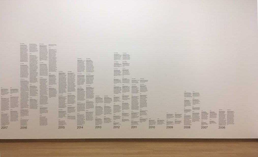 De muur met namen van slachtoffers gaat tot juni 2017. De tentoonstelling is nog tot 15 oktober van dit jaar te zien. Het is een sombere realisatie dat er waarschijnlijk alinea’s toegevoegd zullen worden op de wand. Nu het zo zwart op wit staat, wat doe je met deze confrontatie als je het museum verlaat?