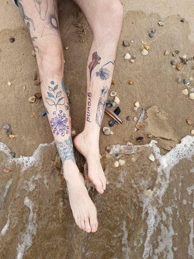 Voor mijzelf helpen tatoeages met voelen dat mijn lichaam van mij is. Voordat ik tatoeages had, wist ik wel dat ik een lichaam had, maar voor een deel deed ik alsof het er niet was. Ik hoor van veel queer mensen, maar ook van andere mensen die niet binnen bepaalde normen vallen, bijvoorbeeld mensen van kleur, dikke mensen, of mensen die differently abled zijn, dat tatoeages een sterke manier kunnen zijn om je lichaam terug te eigenen van bepaalde normen. Dat kunnen schoonheidsnormen zijn, maar ook bijvoorbeeld gendernormen, of normen die zijn voortgekomen uit witheid en het patriarchaat. Met een tatoeage maak je zelf een keuze en zeg je, “dit vind ik mooi, dit wil ik op m’n lichaam.” Voor mij hebben tatoeages ook echt geholpen met genderdysforie. Ik kan me daardoor focussen op andere dingen. Tatoeages veranderen letterlijk je lichaam zonder dat er een chirurgisch ingreep aan te pas komt.
