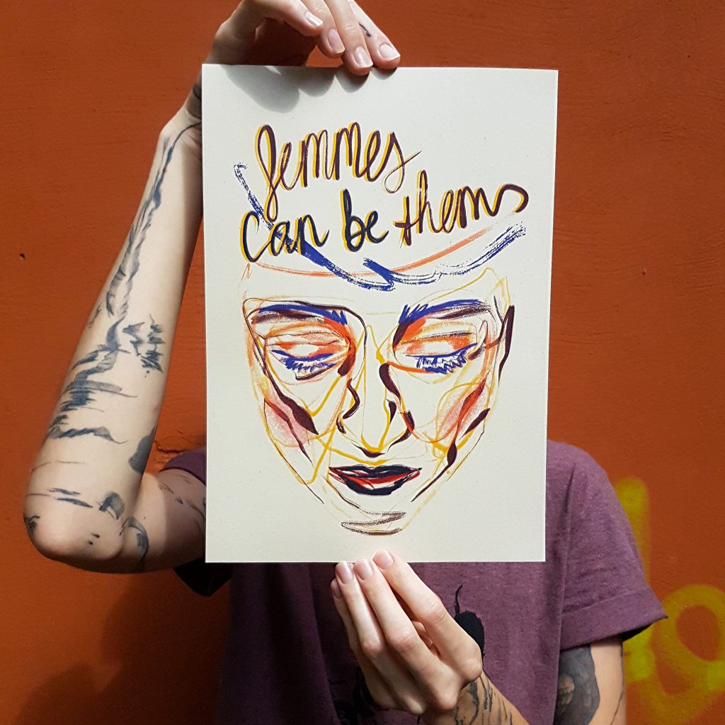 Het is noodzakelijk dat zowel tatoeëerders als klanten zich prettig en veiliger voelen in een tattoo shop. Ik hoor ook dat het nodig is. Mensen komen niet alleen naar me toe omdat ze m’n stijl vet vinden, maar ook omdat ze denken, “yes, ik kan getatoeëerd worden door iemand die ook queer en trans is.” Ik denk bij mijn eigen tatoeages altijd aan wie ze gemaakt heeft. Daarom vind ik het heel intens als mensen weleens vertellen over nare ervaringen die ze hebben gehad bij andere tattoo shops, waar ze het gevoel hadden dat ze niet gerespecteerd werden of zich niet veilig voelden. En dat is waarom we het doen.