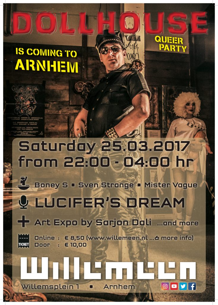 De reacties van de bezoekers zijn overwegend positief en soms kritisch. Maar het feest wordt vooral ervaren als een feest waar in alle vrijheid en respect voor elkaar kan worden gefeest. Omdat ik nu niet al té lang van stof wil zijn en voldoende ‘stof’ over wil houden voor een volgend schrijven, wil ik voor nu eindigen met de aankondiging van de volgende Dollhouse Queerparty op Locatie Willemeen in Arnhem op 25 maart 2017. Kaarten zijn voor 8,50 online te koop via: http://www.willemeen.nl/programma/2017-03-25/dollhouse Kom mee feesten en uit je dak gaan COME AS YOU ARE.